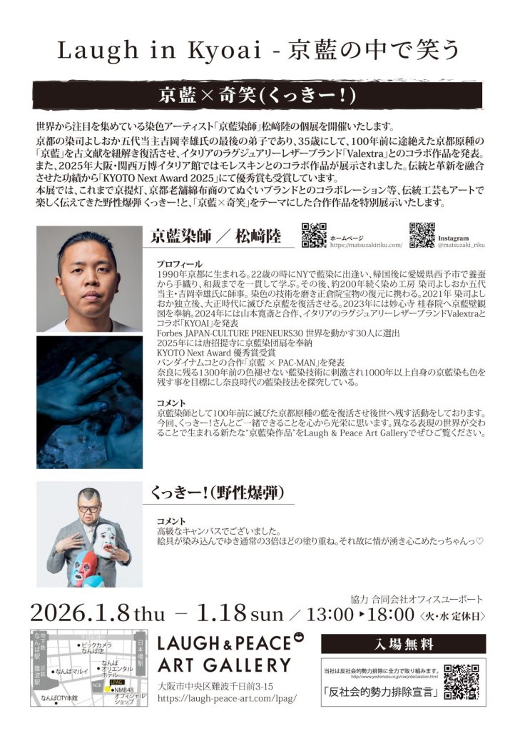【場所】Laugh & Peace Art Gallery(大阪市中央区難波千日前3-15 吉本本館1F)https://laugh-peace-art.com/
